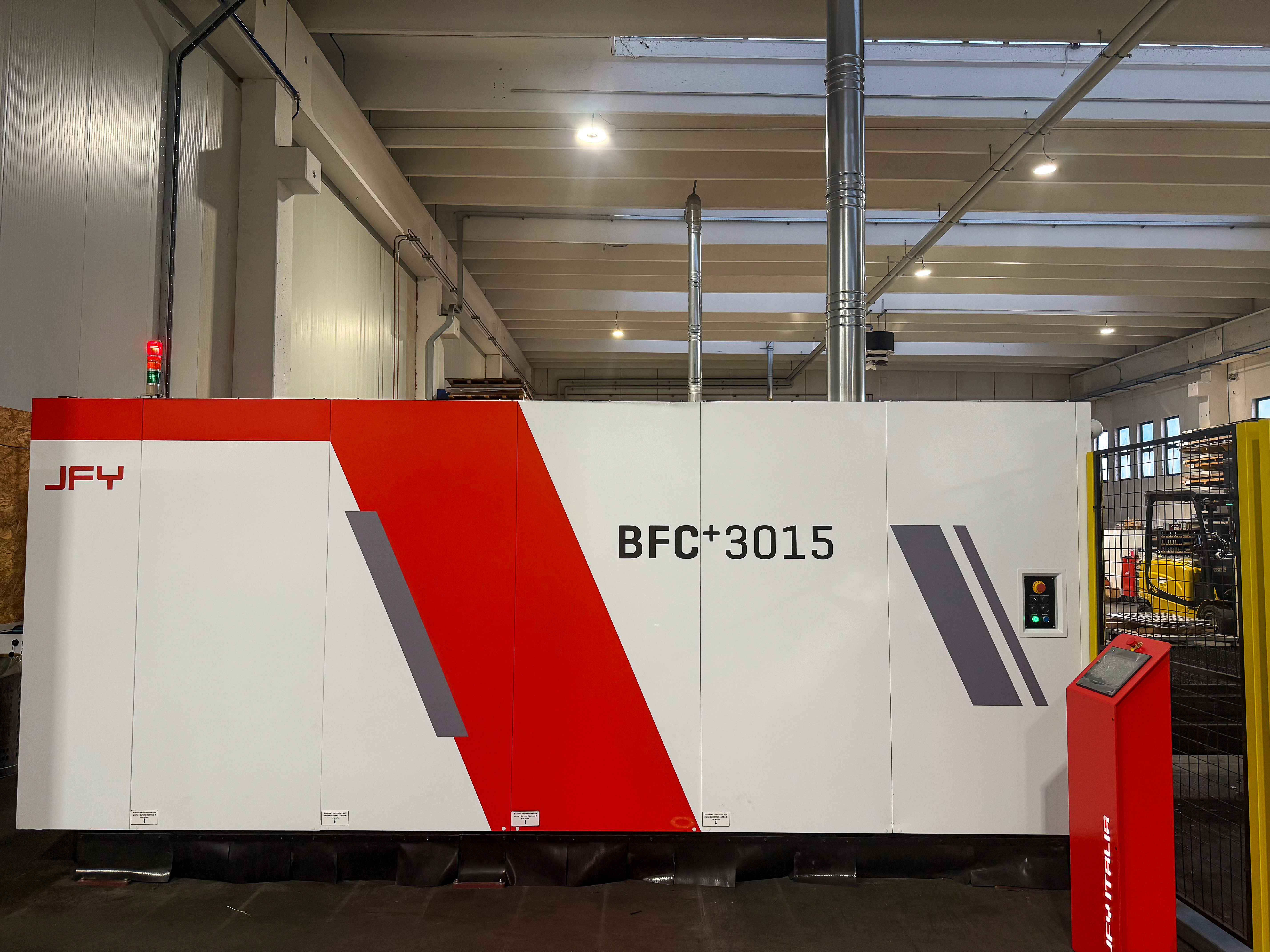 A luglio 2025 abbiamo introdotto nella nostra produzione la nuova JFY BFC+ 3015 Laser, la prima macchina di questo modello installata in Italia.